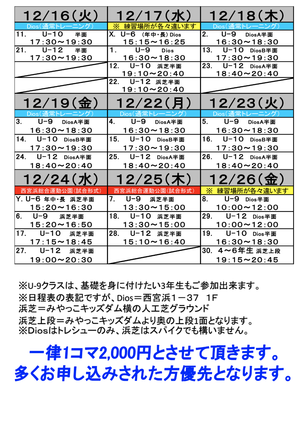 12/15(日)ディオススポーツクラブ・クリスマス会開催!!